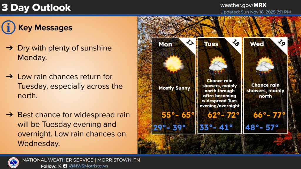 LAFOLLETTE, TN (WLAF)- Extremely low afternoon relative humidity values are in place again today, though low winds for most of Campbell County and the region will keep the probability for hazardous fire weather lower than Sunday.