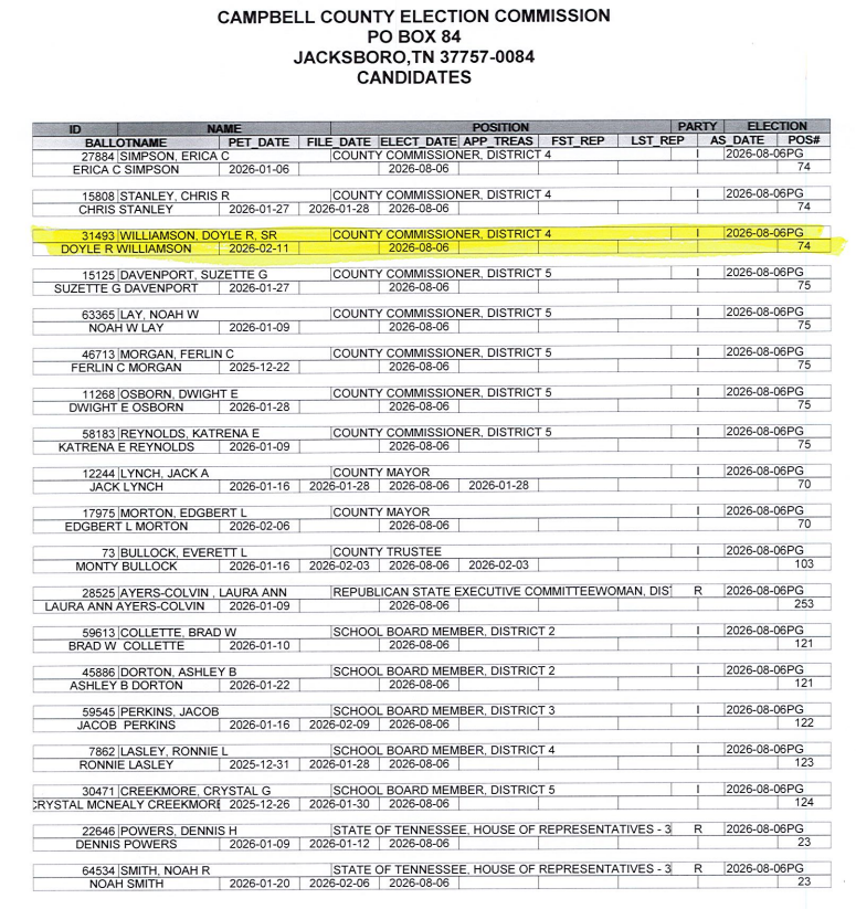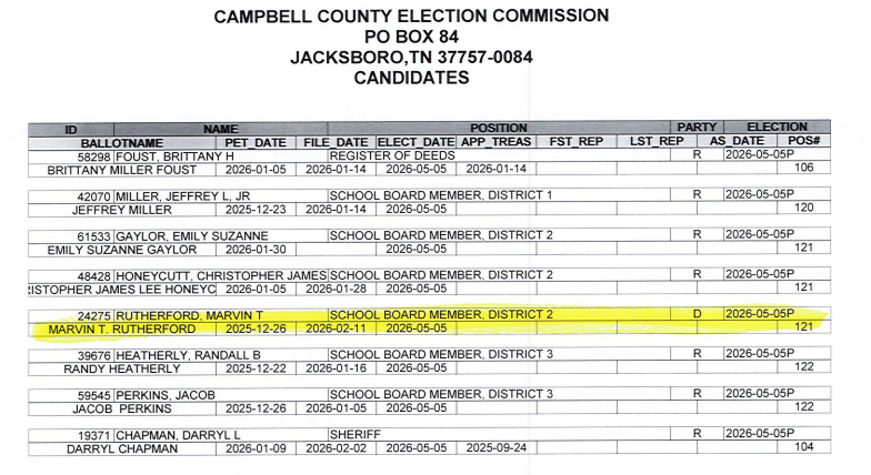 JACKSBORO, TN. (WLAF)- There are four and a half days left to request a petition and to file a petition. If you are planning to seek a local office here in Campbell County, regardless of your party affiliation and whether you are running in the May or August elections, your qualifying deadline is Thursday, February 19, 2026, at noon.