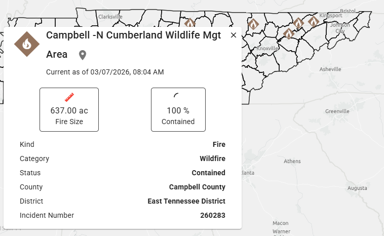 LAFOLLETTE, TN (WLAF)- A wildfire is contained on TWRA property in the mountains of Campbell County. As a result, smoke and haze are showing up in La Follette and much of the valley.