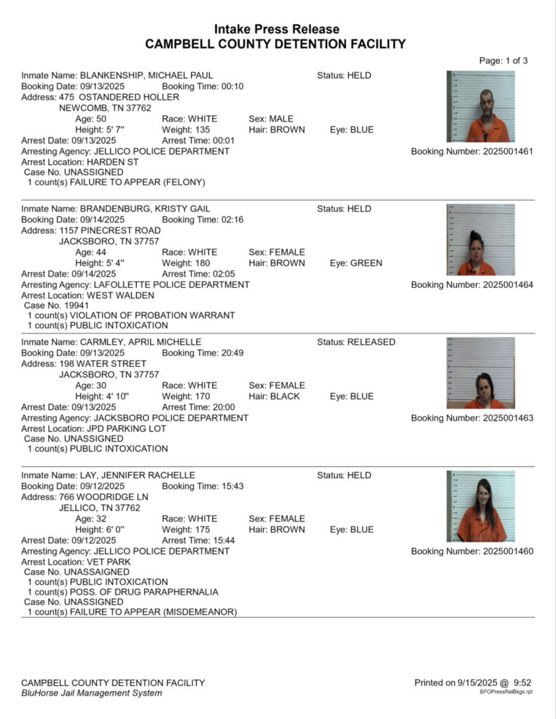 - 4 Names on Fri., Oct. 03, 2025, B.C. Bonding Arrest Report. B.C. Bonding 423-563-0065.