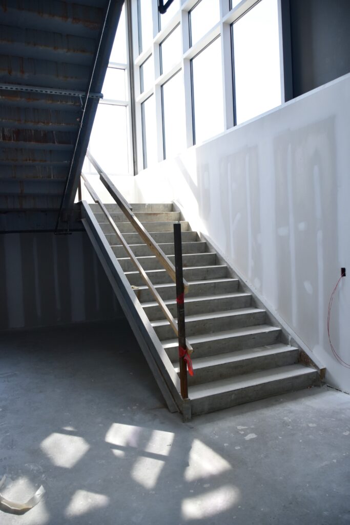 Each end of Building A features stairs to the second floor.