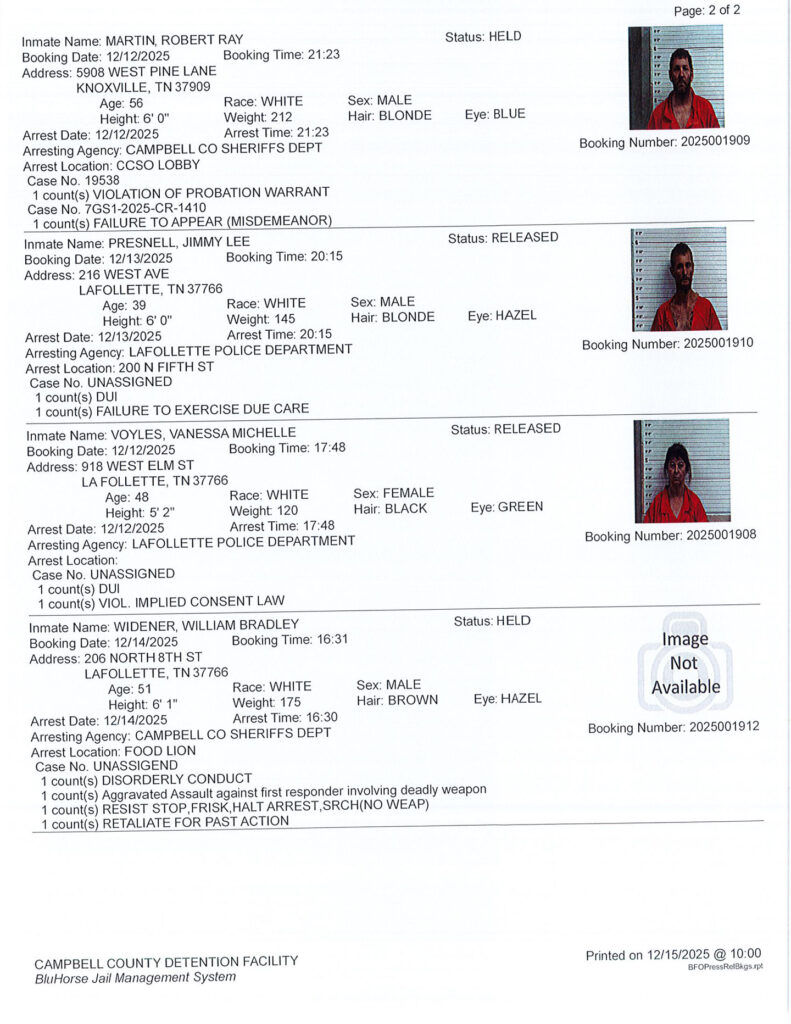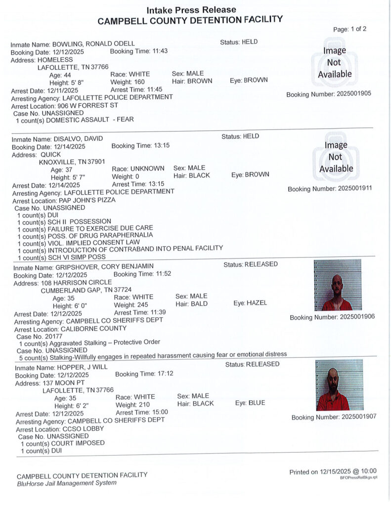 - Four Names on Fri., Dec. 12, 2025, B.C. Bonding Arrest Report. B.C. Bonding 423-563-0065.