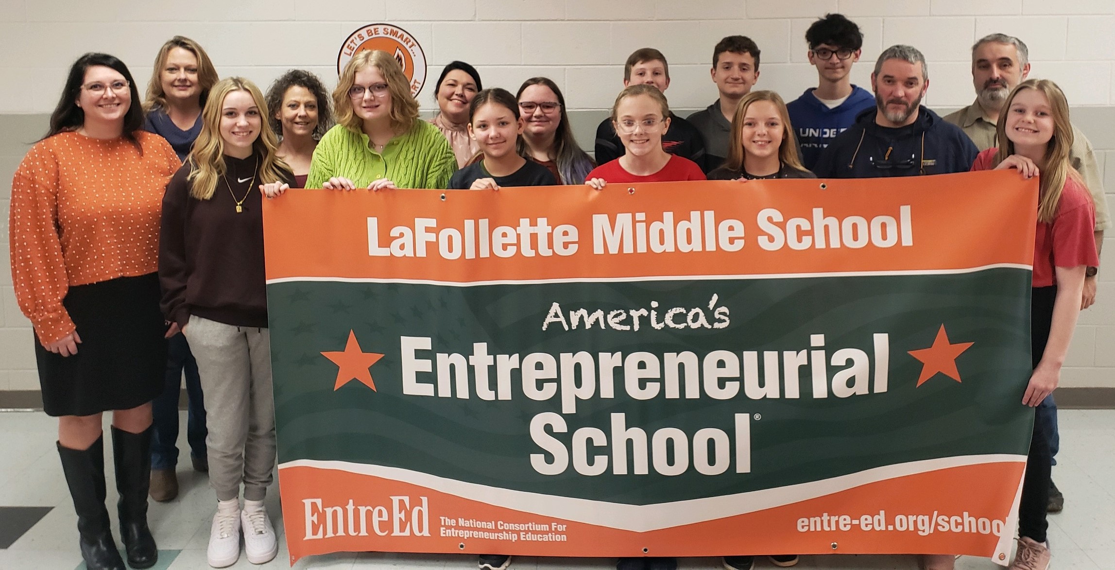 TOP PHOTO: LaFollette Middle School received its America’s Entrepreneurial Schools (AES) designation in recognition of its commitment to providing entrepreneurship education to every student in the LMS building in a single year.