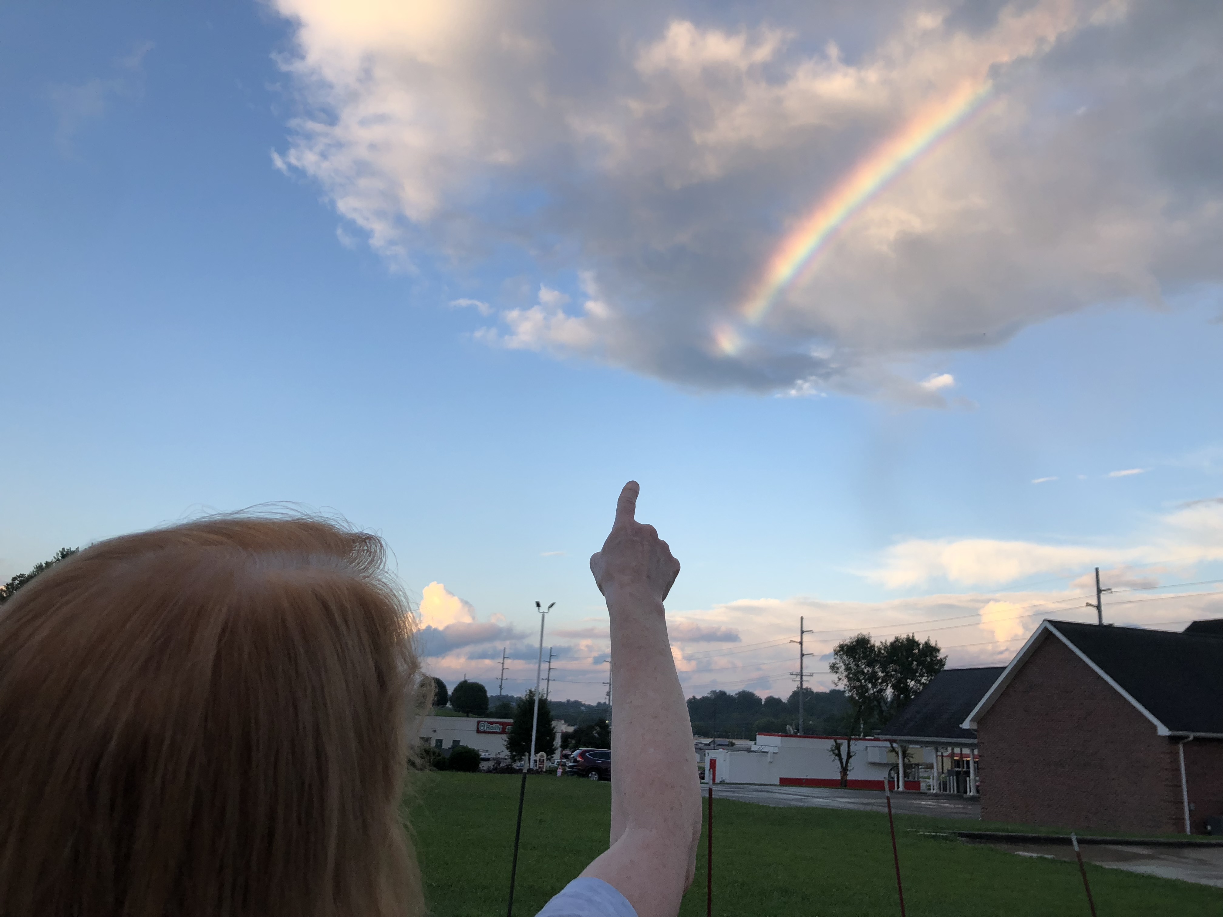 After the day’s third or fourth round of rain, a rainbow appeared a little before 8 pm on Saturday night.  (WLAF NEWS PUBLISHED – 08/15/2020-8:30PM)