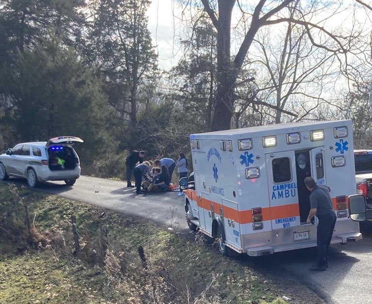 TOP PHOTO: Campbell County EMS is shown here at the scene of a wreck last month.