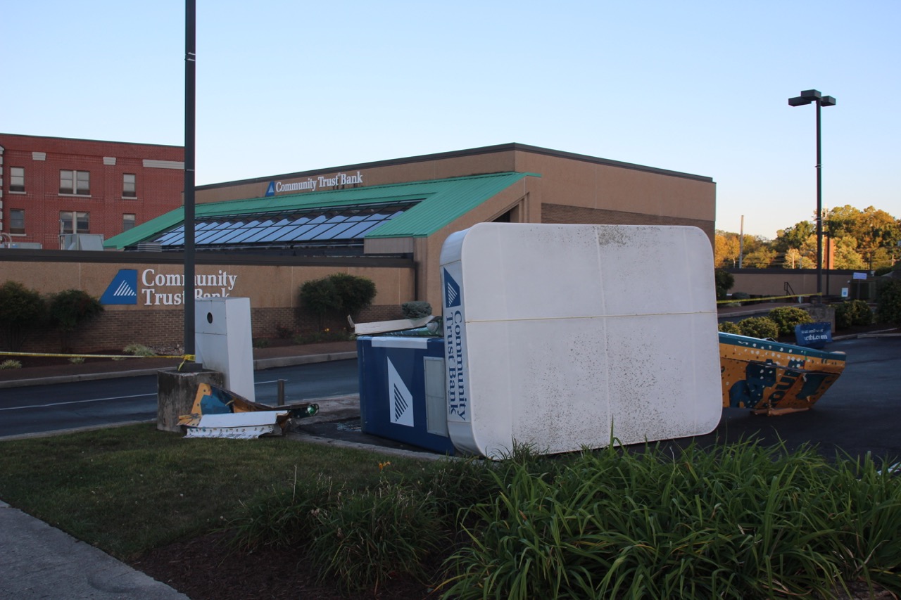 TOP PHOTO: The Downtown La Follette Community Trust Bank ATM was knocked over by a speeding car on Tuesday afternoon.