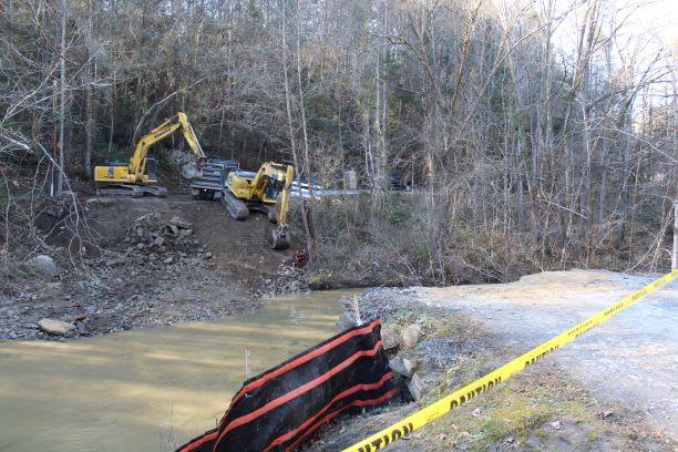 STINKING CREEK, TN (WLAF) – Crews made quick work of the nearly 100-year- old bridge that used to sit between Stinking Creek School and Stanfield Church.