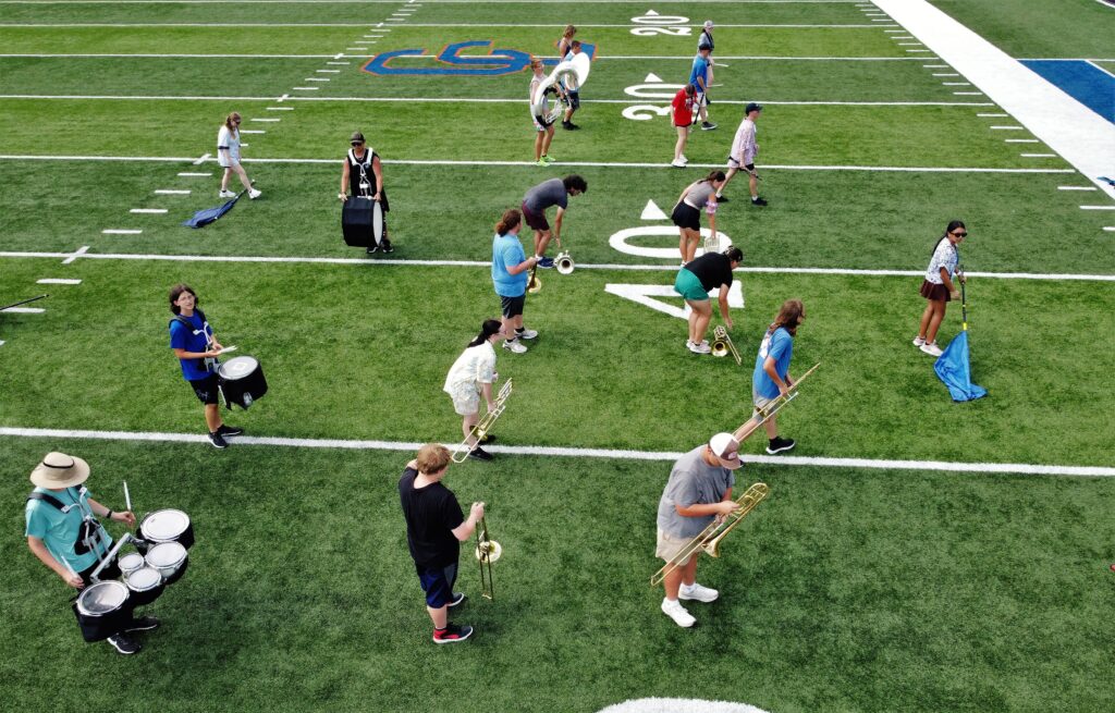 TOP PHOTO: Your 2025 Mighty Cougar Marching Band practices on the hot turf of Reynolds Field