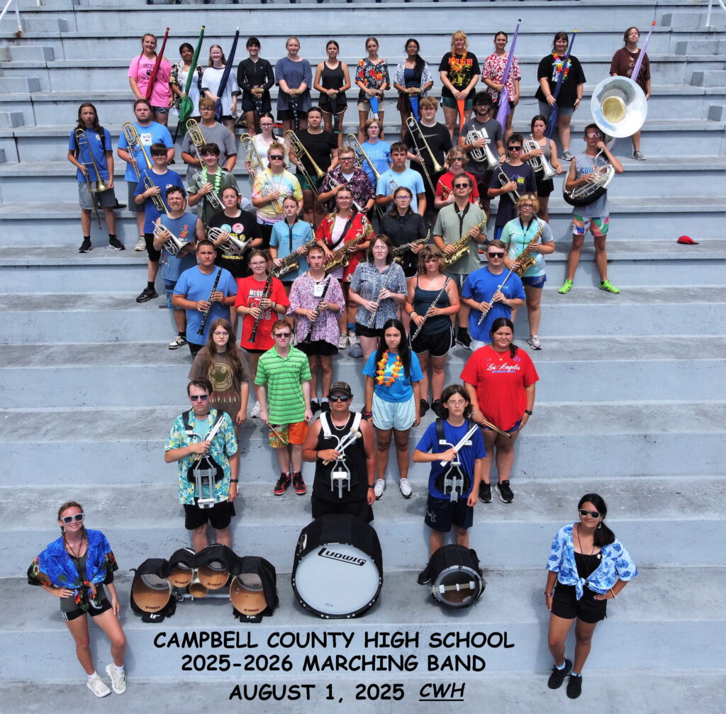 Christy Hibbler is the Color Guard Tech for the 2025 CCHS Band. Ethan Clock works with percussion, and the brass tech is Helen Campbell. Along with these individuals, numerous parents, friends, former band members, and sponsors are a major key in keeping the band engine running.