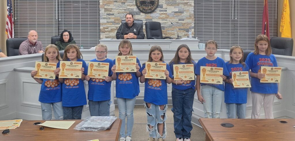 At its Tuesday meeting, the Campbell County Board of Education recognized the Wynn Elementary School girls’ basketball team and Jellico Elementary School boys’ basketball team, along with cheerleaders from both schools for their small team division basketball championships.