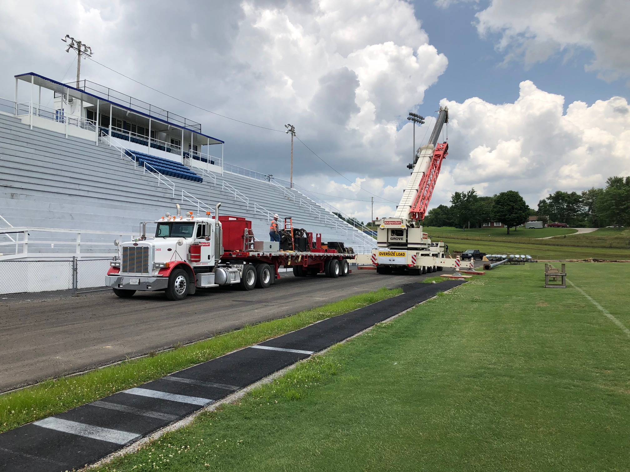 Heatherly explains that the football scoreboard had to be taken down in order to construct the new track.