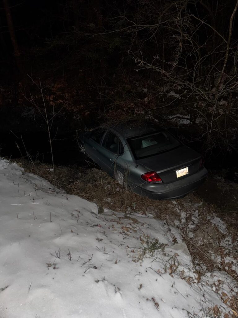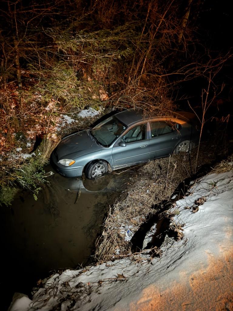 LAFOLLETTE, TN (WLAF)- A young Campbell County man on his way to work traveling Davis Creek Road hit a patch of black ice around 6am Friday and went 30-feet over an  embankment into Davis Creek.