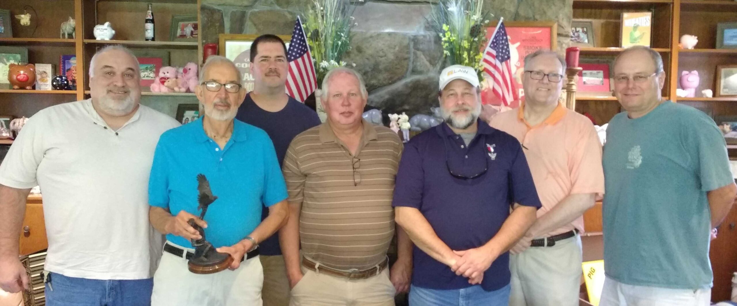 TOP PHOTO: Bob Kibler’s Eagle Scouts: In 2019, several of former Scoutmaster Bob Kibler’s Eagle Scouts from the 1970s and 1980s met to honor the leader. From left: Rob Kibler, Bob Kibler, Doug Kibler, Tommy Overton, Daniel Freeman, John Troutman, and David Reynolds. The group presented Bob with several mementos, including the Eagle statue he’s holding.