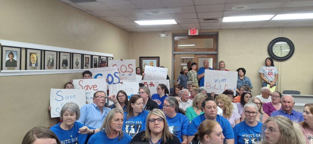 It was standing room only at the courthouse with teachers, parents and students from 5th district schools turned out in number at Wednesday’s BOE budget meeting, many of the kids had Save our schools posters which they held up during the meeting. The BOE passed a base option for the budget, which did not include the closure of any schools.