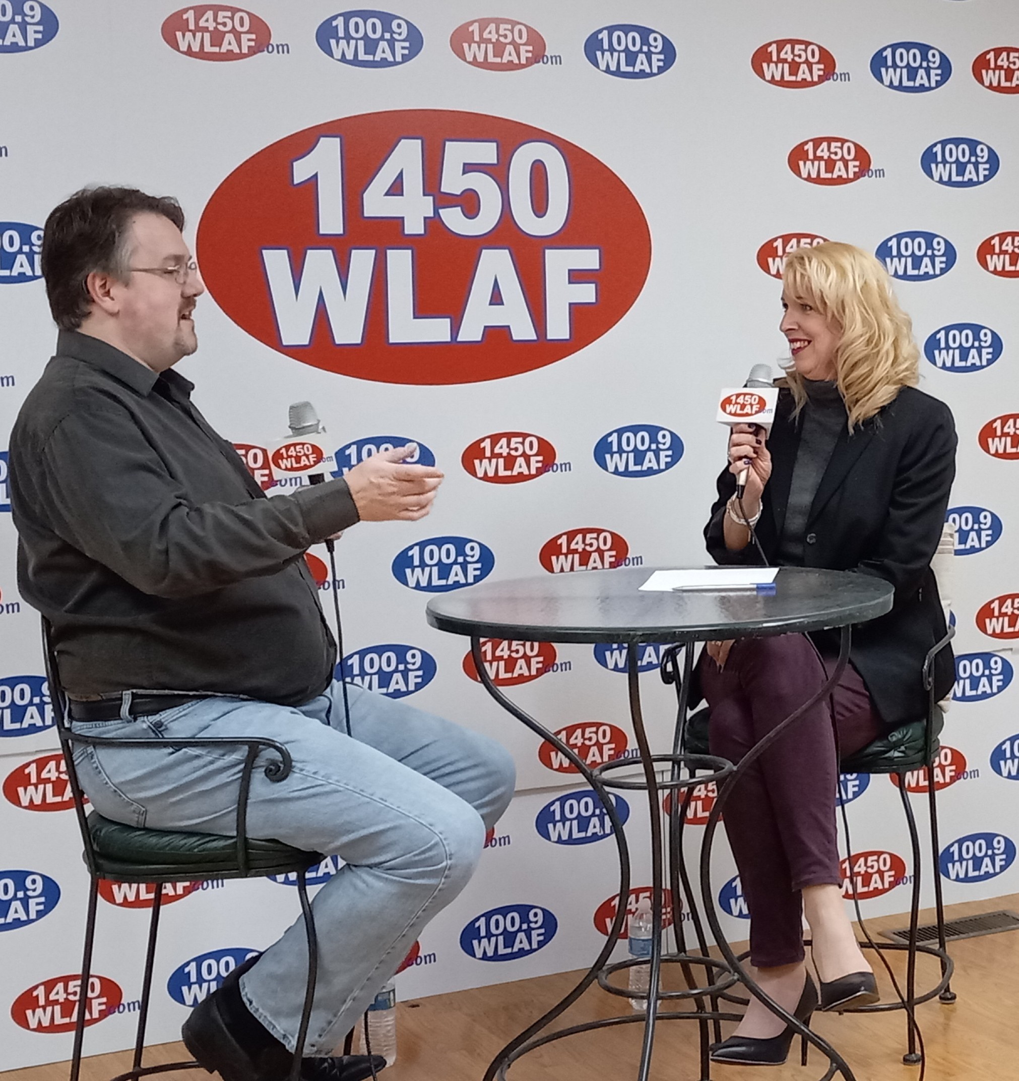 TOP PHOTO: A Saturday this month was Brian Henegar Day at WLAF as the Jeopardy! Champion sat down for an interview with WLAF’s Susan Sharp. (PHOTO COURTESY OF WLAF’S CHARLOTTE UNDERWOOD)