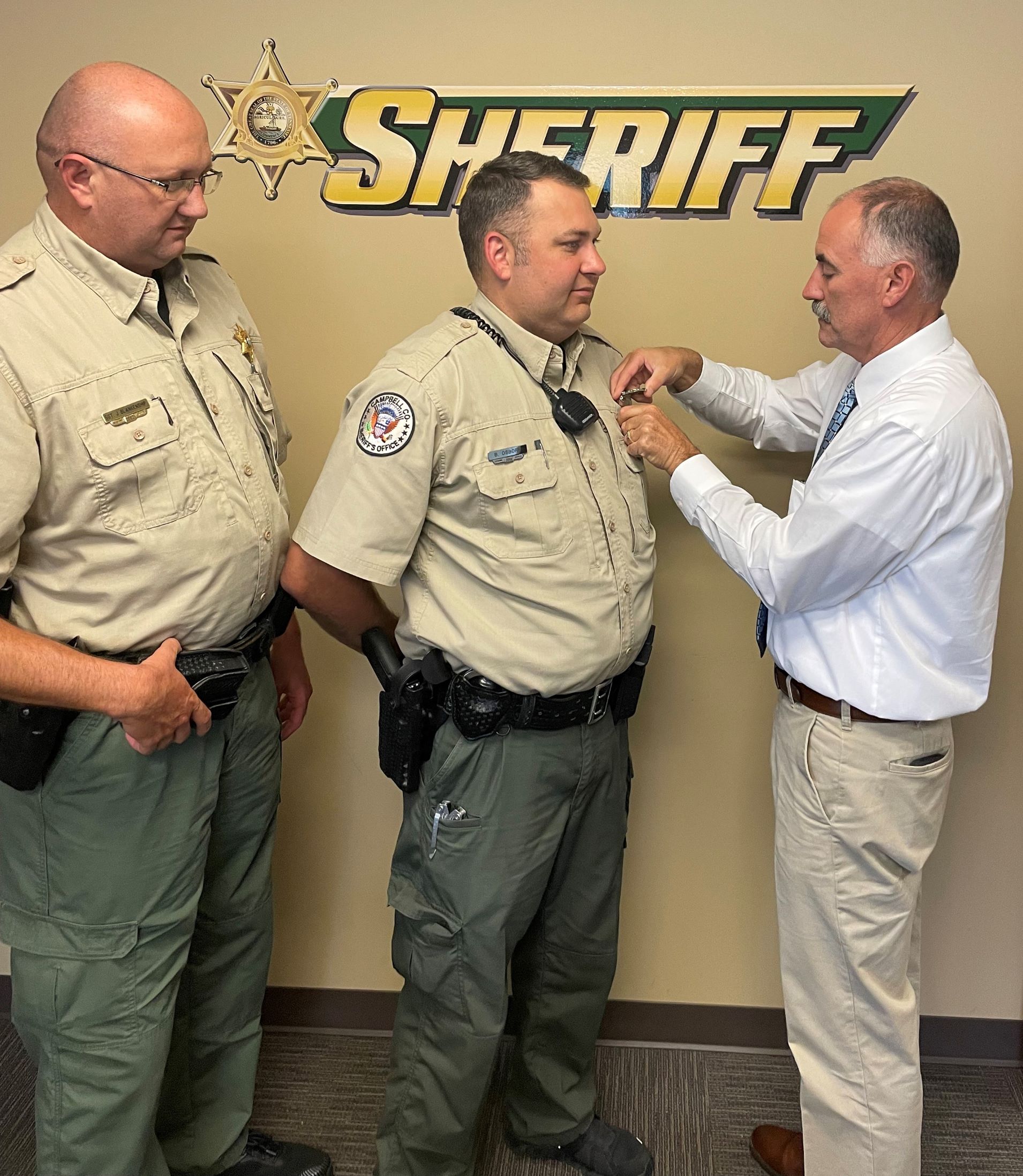 TOP PHOTO: Campbell County Sheriff Wayne Barton (right) promoted Deputy Sheriff Brian Osborn (center) to Corporal. Sgt. Johnny Blankenship looks on as Osborn receives his promotion. Osborn will serve as a First Line Supervisor for the School Resource Officer (SRO) Division.
