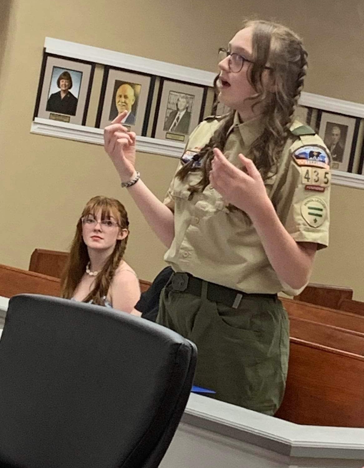 TOP PHOTO: Life Scout Macy Kibler with BSA Troop 435 completed phase one of getting approval to begin her Eagle Scout Project by attending Campbell County Building and Grounds Committee Meeting Thursday evening.