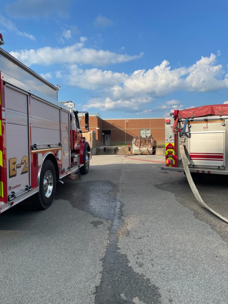 A Caryville Police Officer spotted a fire Sunday evening at the Caryville Elementary School on Elkins Road. A 30-yard roll off dumpster behind the school was on fire prompting a response from the Caryville Volunteer Fire Department with mutual aid provided by the Jacksboro Fire Department.
