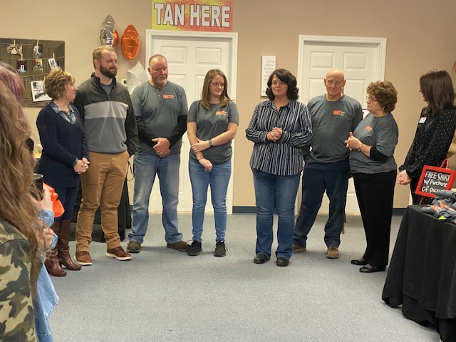The Campbell County Chamber of Commerce led the celebration for Hester Muse and her staff at C & L as the snipping of the ribbon took place to showcase the new Tanning Bed Section at the North Tennessee Ave. business.