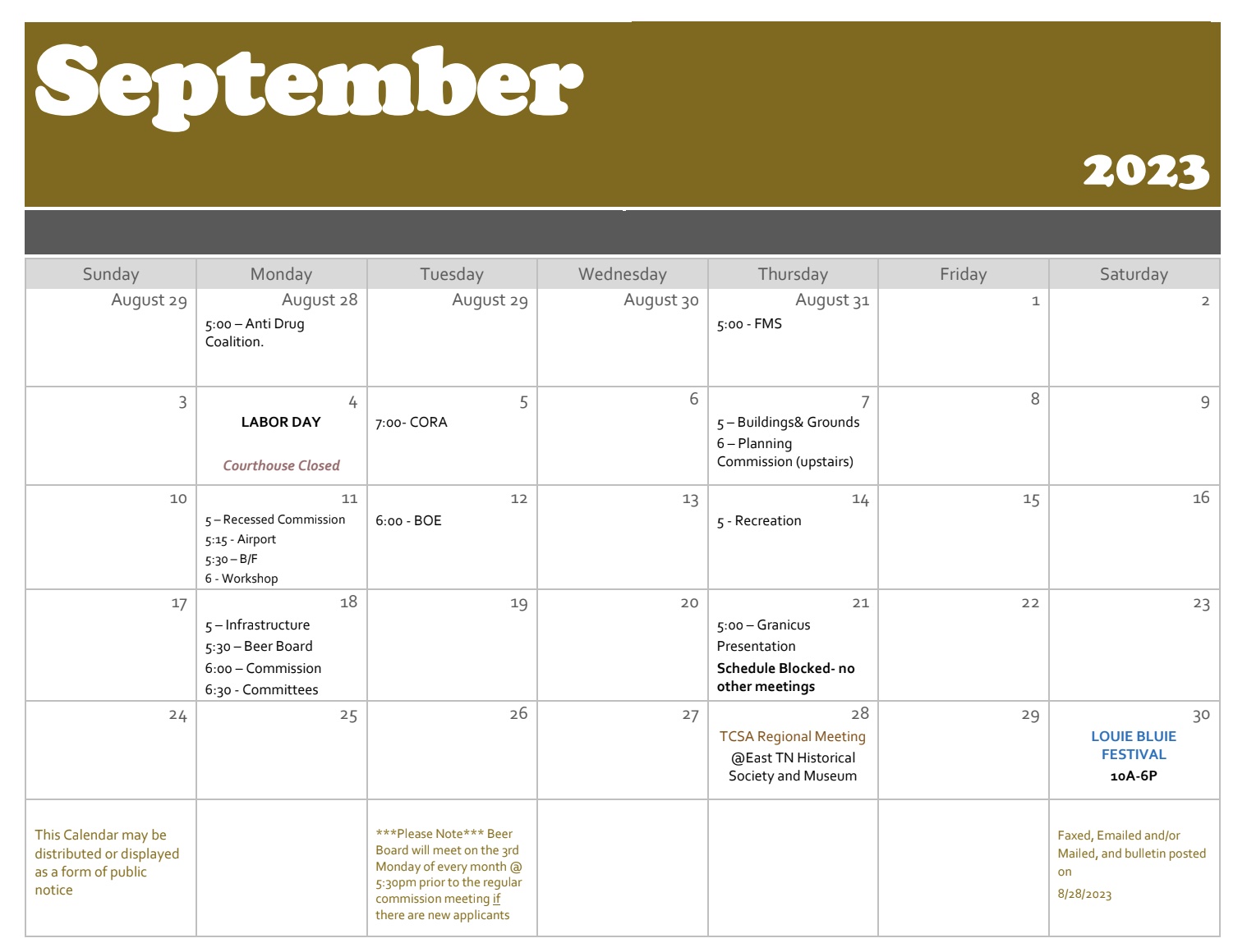 JACKSBORO, TN (WLAF) – The Campbell County Board of Education is scheduled to meet in its regular monthly meeting on Tuesday at 6pm at the courthouse. HERE is the agenda for Tuesday’s meeting, and it is followed by minutes from the August meeting. (WLAF NEWS PUBLISHED – 09/11/2023-6AM)