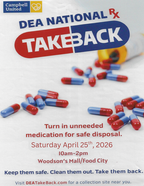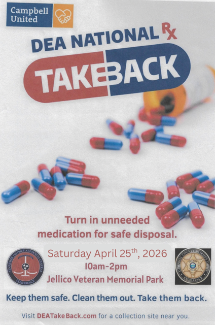 CAMPBELL COUNTY, TN (WLAF)- Campbell United has a drug take-back event scheduled for Sat., Apr. 25, in La Follette and Jellico.