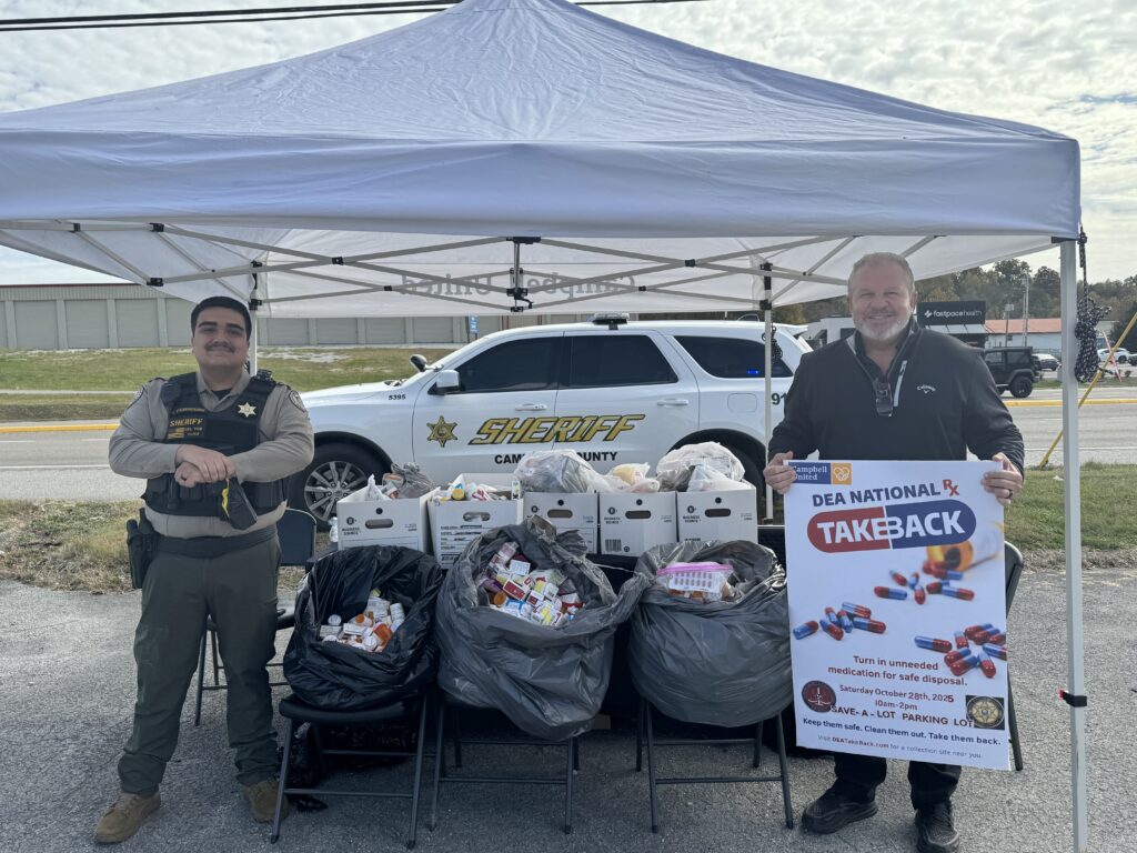 According to Campbell United Director Charlsa Honeycutt, they were “very pleased with the turnout for the event” and “over 175 pounds of prescription drugs were disposed of.” Honeycutt said a huge thank you to Campbell County citizens for coming out and disposing of their medications properly.