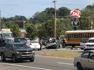 LAFOLLETTE, TN (WLAF) – This truck flipped on its top near the cut-across on the four lane Friday afternoon around 1:30pm.