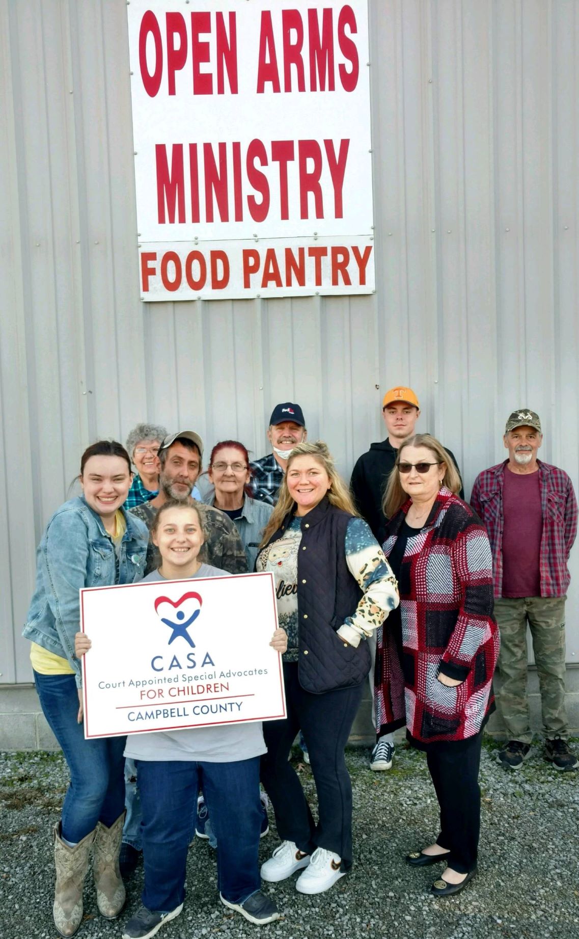 TOP PHOTO: CASA of Campbell County held a holiday food drive for Open Arms Ministry Food Bank. CASA Executive Director Jan Jones (front far right) as well as CASA volunteers and volunteers from the Tennessee College of Applied Technology delivered boxes of food to Open Arms Ministry Food Bank on Wednesday.