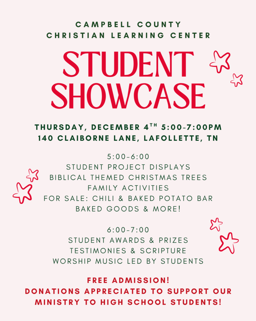 LAFOLLETTE, TN (SPECIAL TO WLAF)- Students and teachers at the Campbell County Christian Learning Center welcome you to today’s Student Showcase.