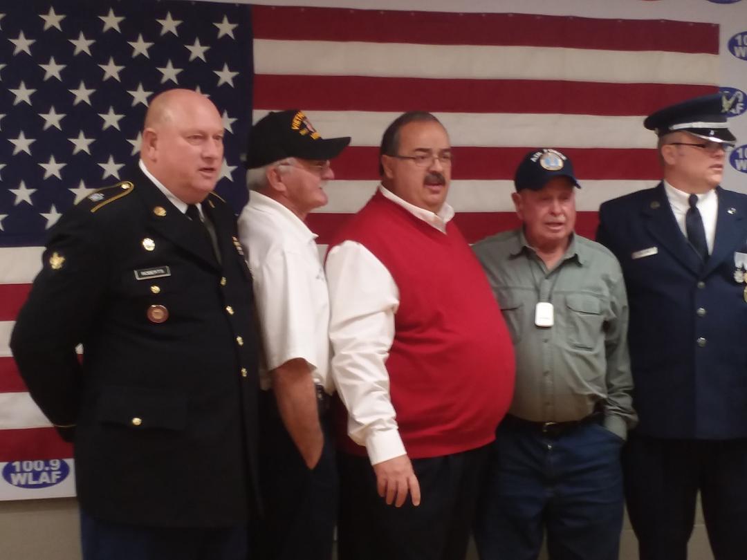 Jerry Chadwell was joined by a handful of Campbell County Veterans Monday night on WLAF-TV 12 and WLAF Radio.TOP PHOTO:Â L-R Veterans Leon Roberts, Mike Stanfield, host Jerry Chadwell, Melvin Boshears and Kevin Walden. Â