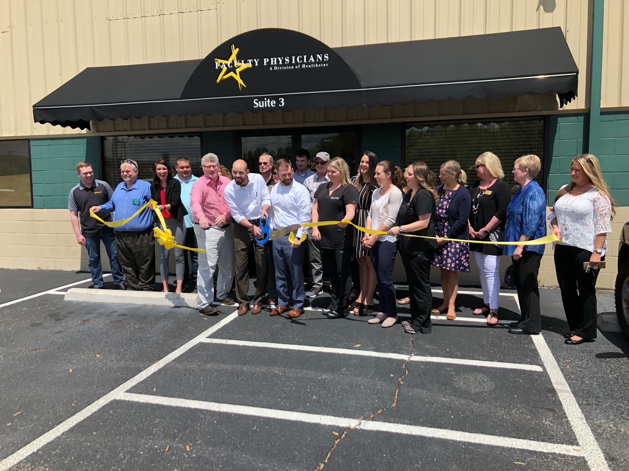 L – R:  Dr. David Goldman (red shirt), Dr. Ryan Unger and Dr. Christopher Bowlin snipped the ribbon this afternoon at their La Follette offices in the Grace Rehab Medical Complex.  Faculty Physicians is the newest member of the Campbell County Chamber of Commerce (WLAF NEWS PUBLISHED – 04/26/2019-4PM)