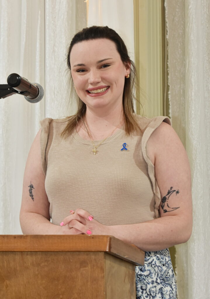 The Master of Ceremonies was Jared Effler, District Attorney General of the 8th Judicial District and Campbell County Children’s Center Board member (above). Effler introduced special guest Koren Fogelsanger (below) who shared a bit of her testimony as to what the Children’s Center has meant to her.
