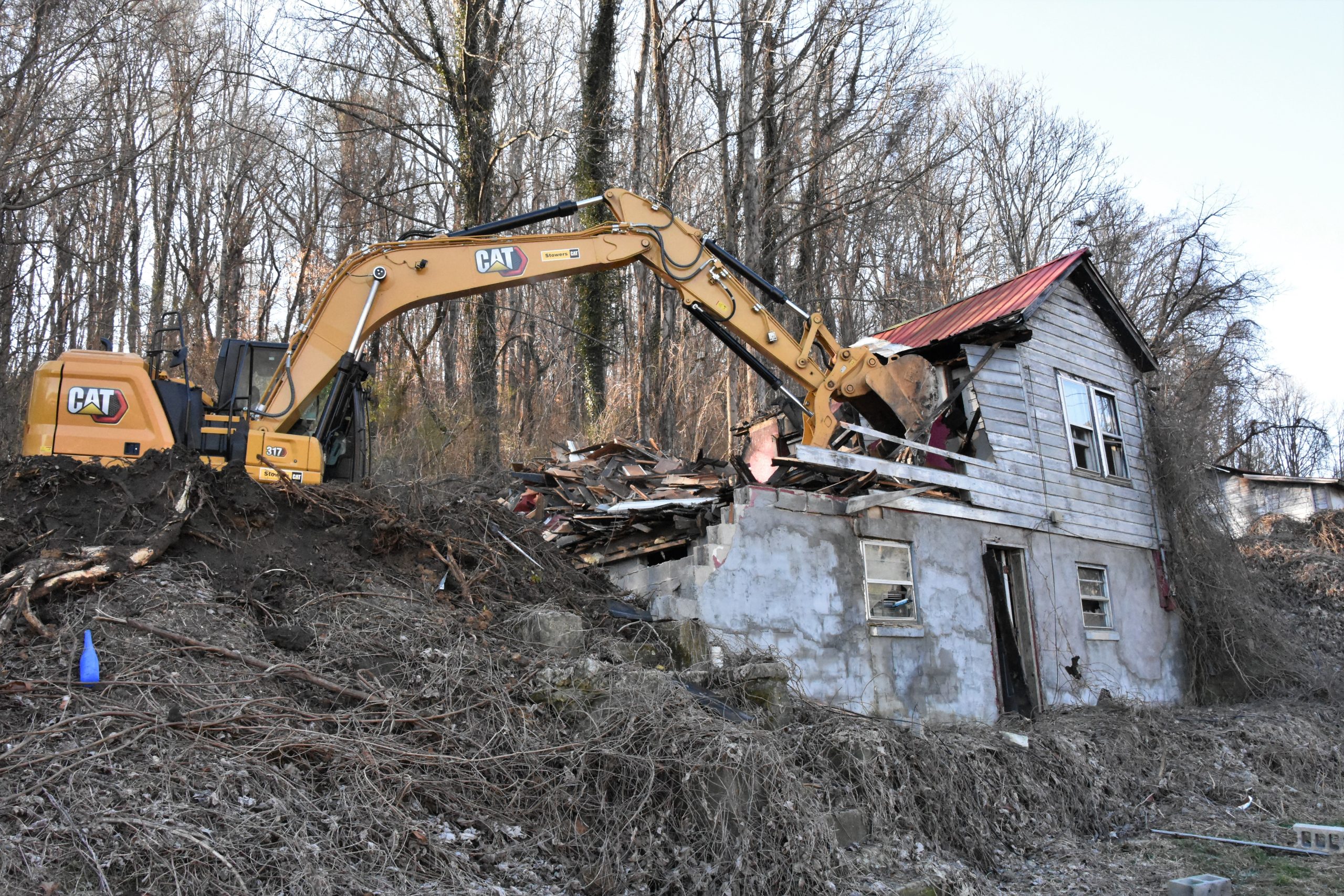 LAFOLLETTE, TN (WLAF) – In December, it was a house on Nevada Avenue. This week, it was a house on Cherry Street that fell victim to the big CAT 317 Hydraulic Excavator.