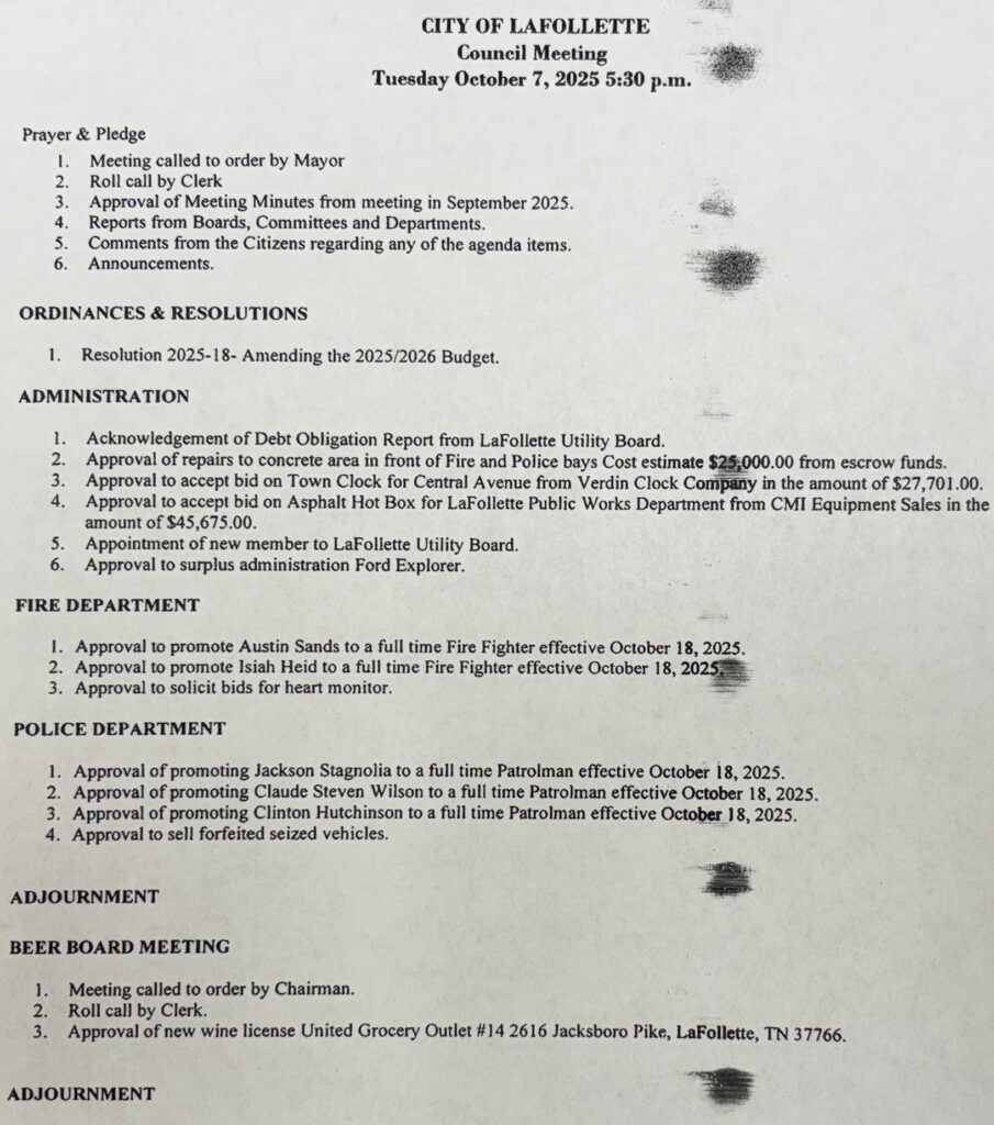LAFOLLETTE, TN (WLAF)- The City of La Follette meets in its regular monthly meeting on Tuesday, and filling John Snodderly’s vacancy on the LUB board of directors is among the items on the agenda.