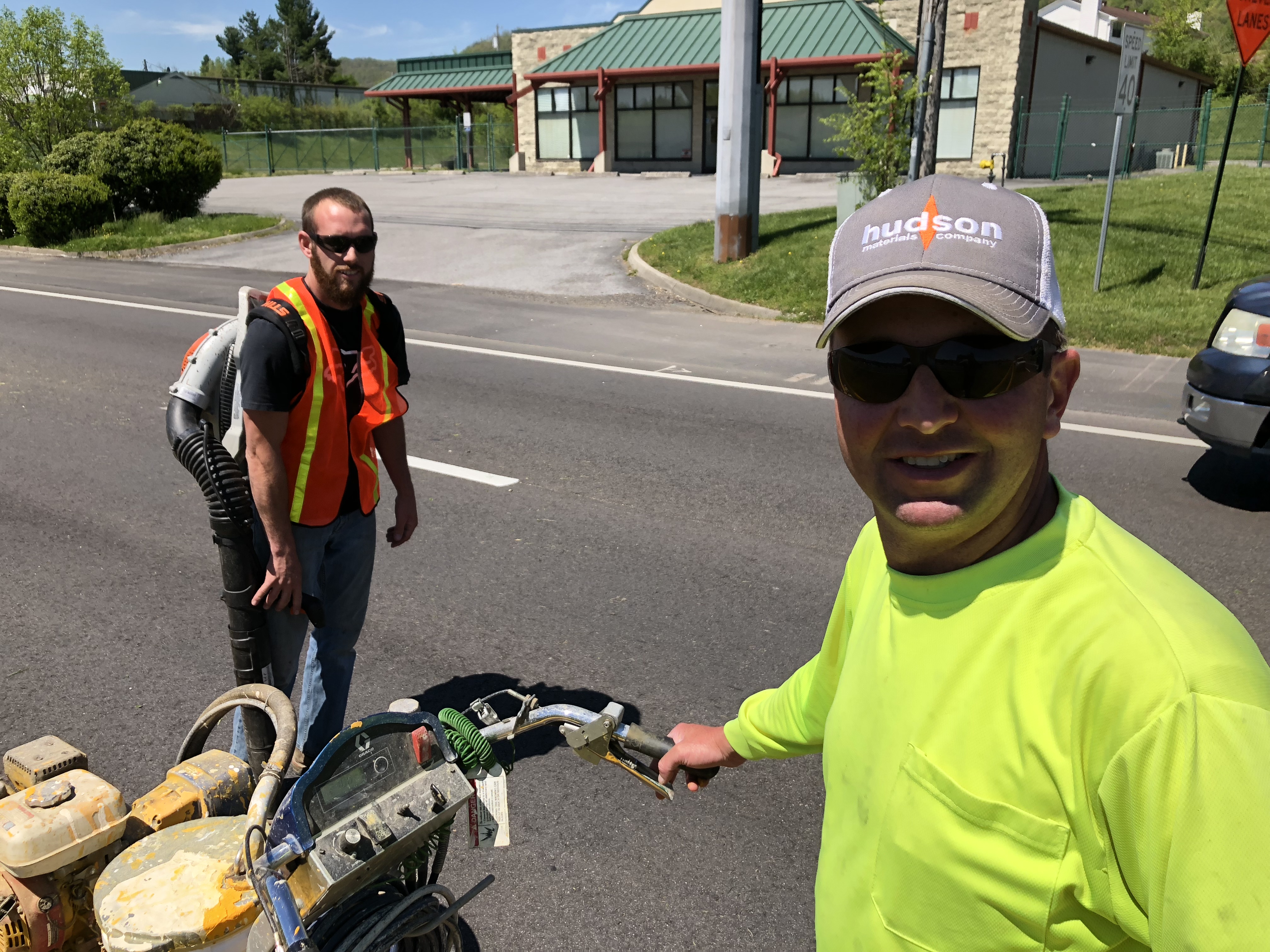 Sunshine, warm temps and plenty of elbow grease got La Follette’s Clean-Up Week off to a great start on Monday.TOP PHOTO: The City of La Follette Street Department’s Brandon Stanford (L) and Casey Boshears (R) team up on the four lane in front of White’s Tires. Stanford fired up the blower to clear off the curb as Boshears follows with the paint (below).