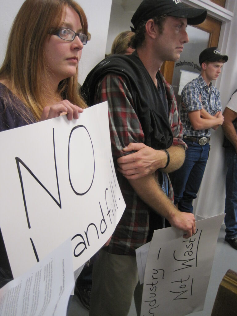 Campbell Countians Melisha Willis and John Shepherd hold posters from the 2013 public hearing regarding a proposed landfill in the White Oak area. Over a decade later and a landfill is once again being proposed. Commissioners were asked on Monday by Bill Manfull to hold a public hearing on it so the “public could be educated on the benefits of a landfill being established in Campbell County.”
