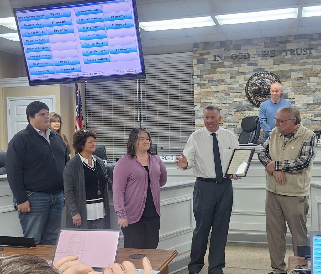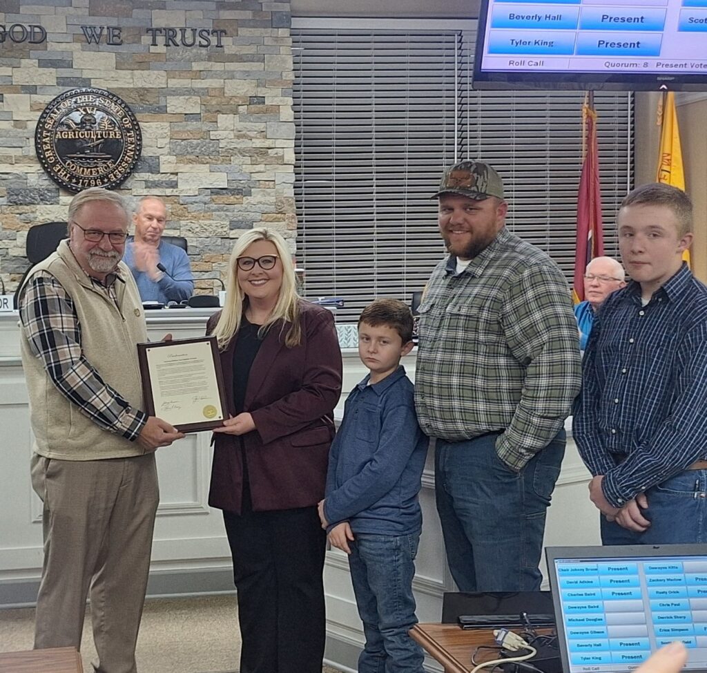 Circuit Court Clerk Office Bobby Vann and his staff were recognized next with a proclamation. Some of his staff and family joined him for the recognition.