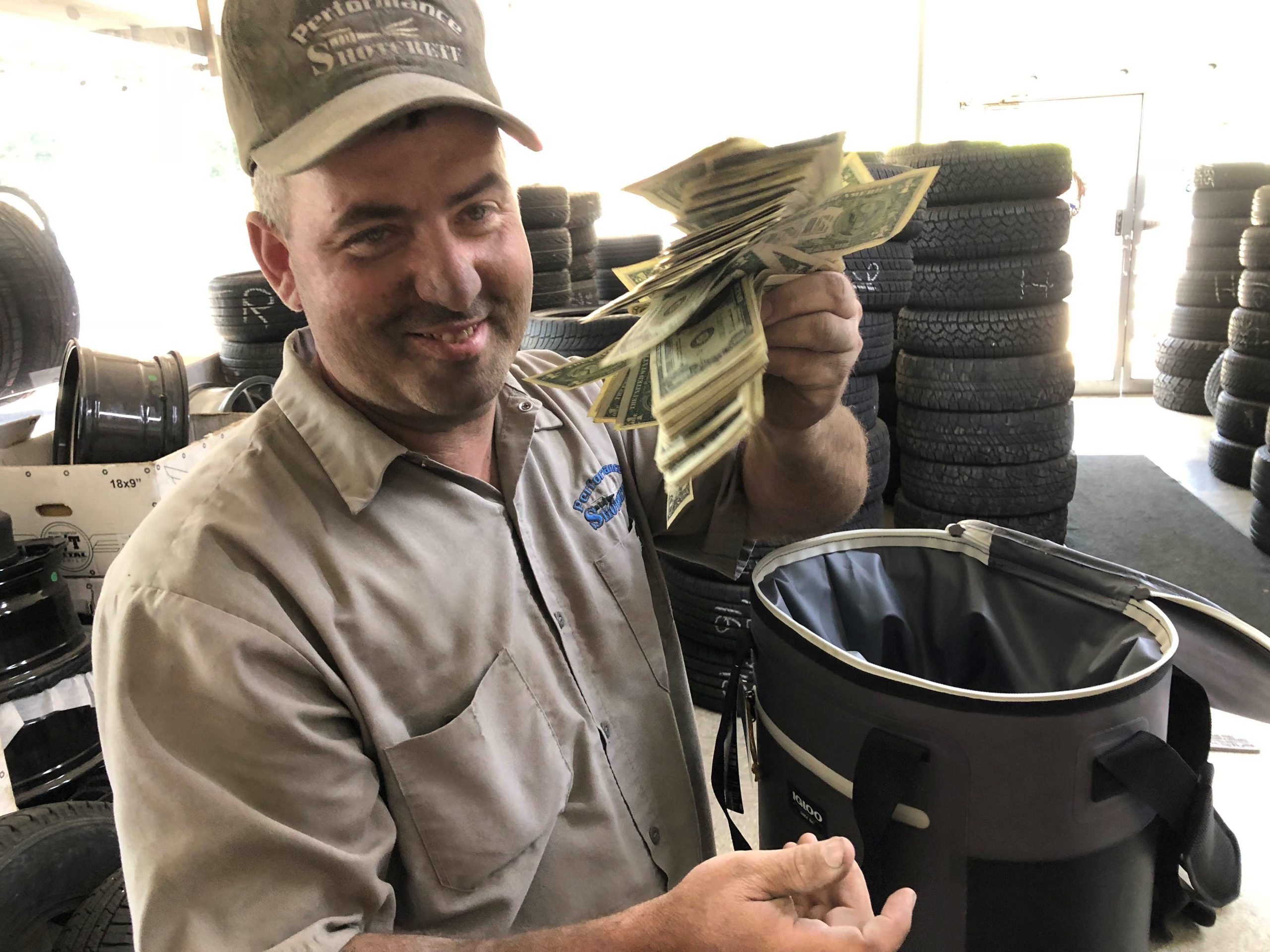 TOP PHOTO: Anthony Johnson was a cool cash cooler winner Thursday from JR’s Tires.