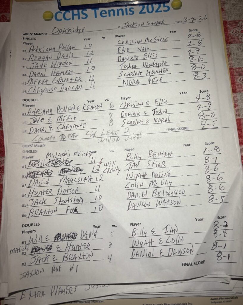 OAK RIDGE, TN (WLAF)- Coach Rusty Fields Campbell Tennis teams split with the Wildcats on Monday afternoon at the Jackson Square Courts at Oak Ridge. “It was a big win for our boys, and the girls went down to the wire, playing so hard,” said Coach Fields.