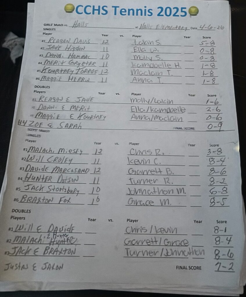 Will Croley, Davide Marcosano, Hunter Dotson, and Braxton Fox all recorded singles wins while the Cougars swept three doubles matches. Doubles partners of Croley and Marcosano (8-1), Malachi Meisel and Dotson (8-4) and Jack Stooksbury and Fox (8-6) came away with wins.