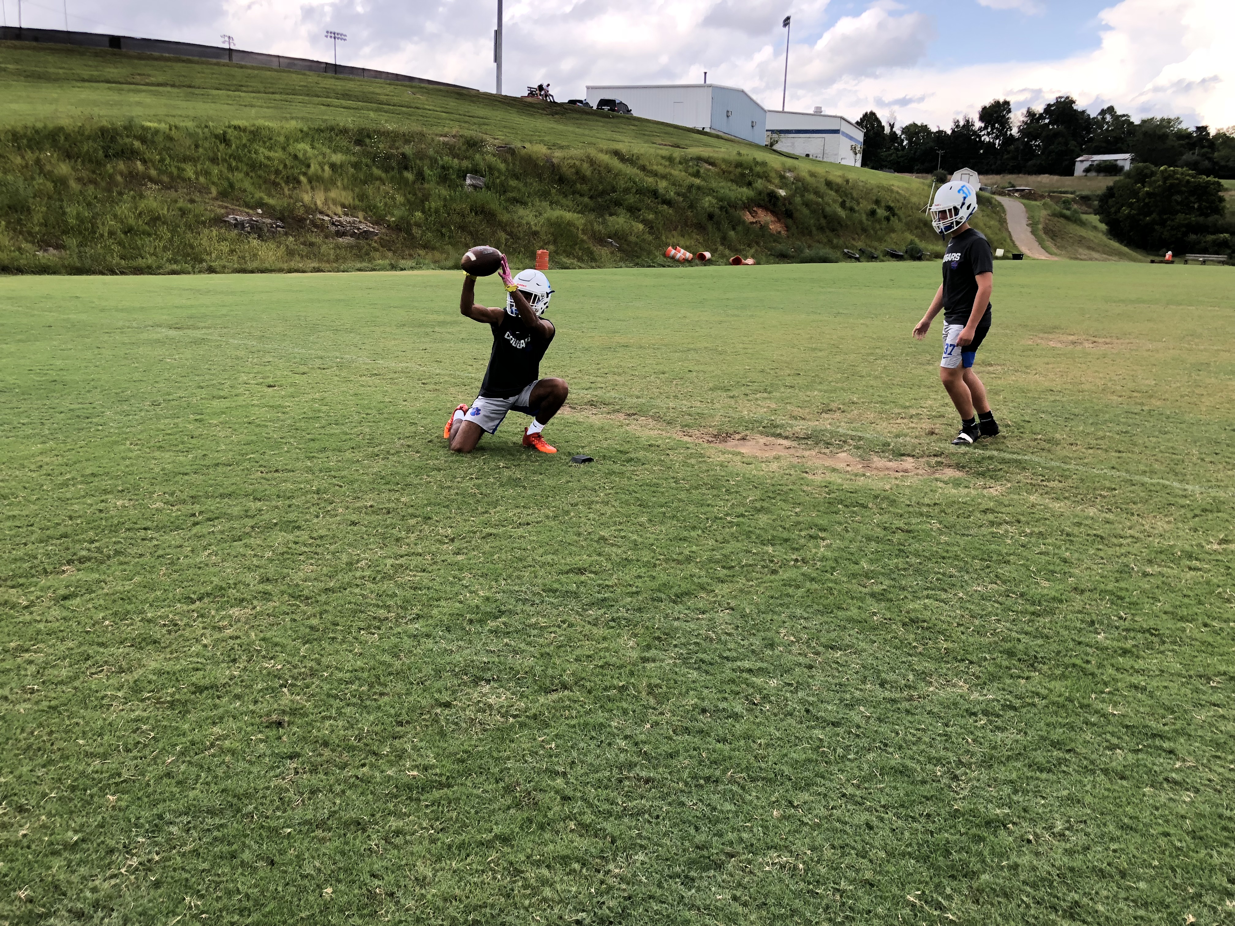 TOP PHOTOS:  Devlin Dukes catches Michael Brown’s long snap as Thomas Johnson kicks.  Johnson’s 25-yard field goal, that was good, was the last play of the day as the Cougars headed to the locker room as rain moved in.