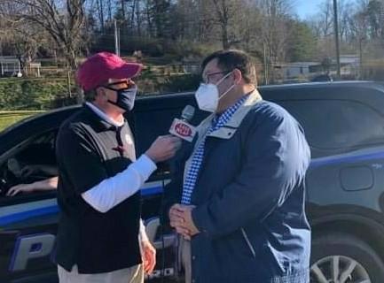 TOP PHOTO: Campbell County Mayor E.L. Morton (right) shared thoughts with WLAF on the first day the Campbell County Health Department began administering the COVID-19 vaccine on Mon., Dec. 21.