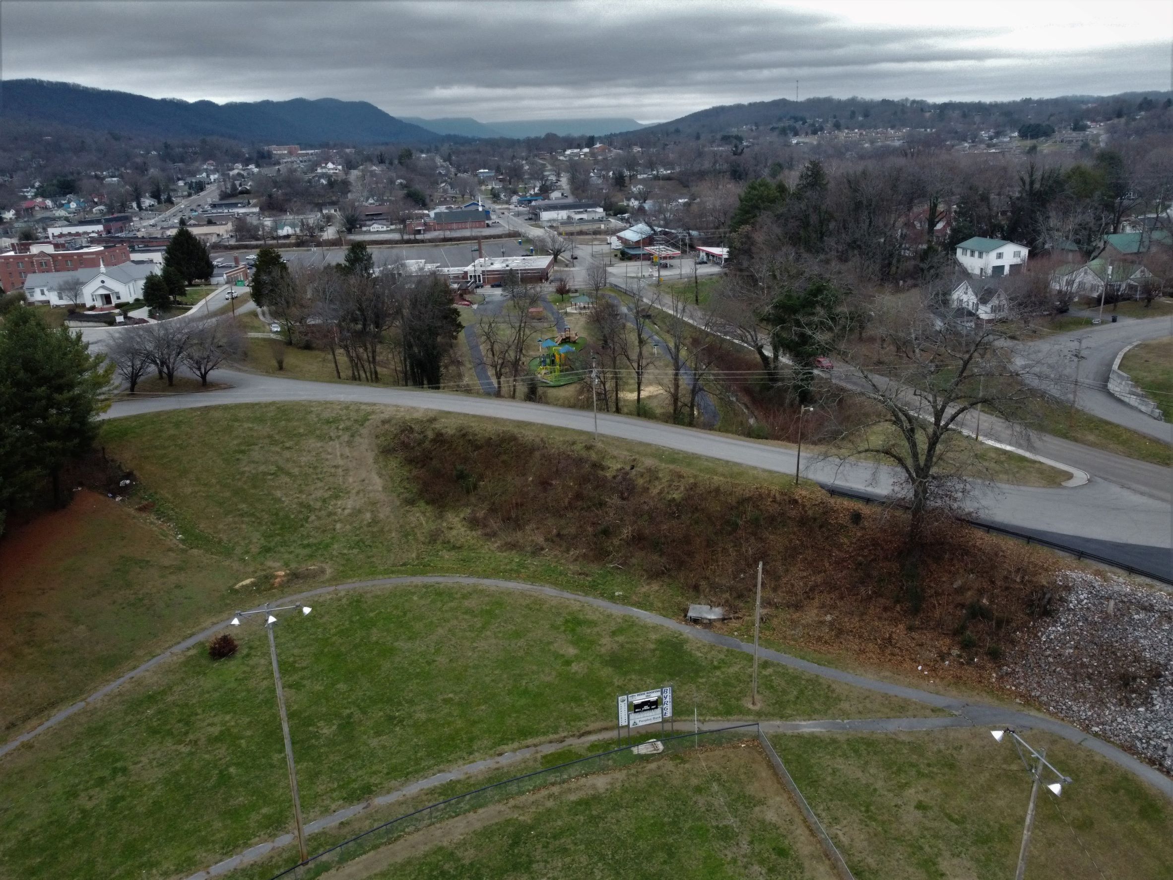 TOP PHOTO: This ariel shot from WLAF’s Eagle I shows the section of Depot Street/South 5th Street the City is talking about leveling to join two city parks, Seargeant Park (left) and Liberty Park (right). The photo is courtesy of WLAF’s Charlie Hutson.