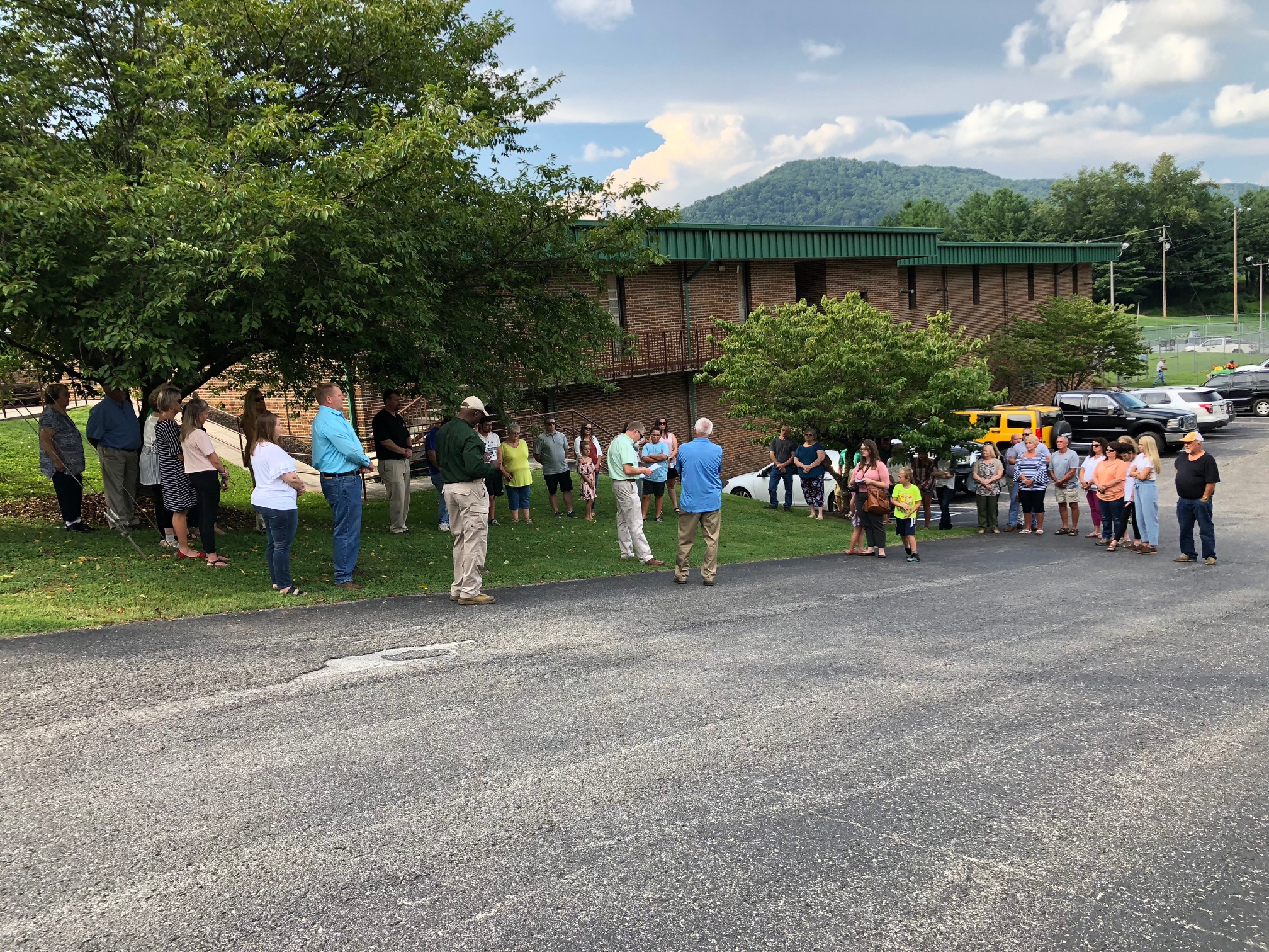 LAFOLLETTE, TN (WLAF) – Kenny Baird prayed, “Bless these families, the city and its leaders. We thank them for their efforts and time to better our community.” Late Thursday afternoon, more than 50 people (TOP PHOTO) gathered in the shade under trees beside the La Follette Library to dedicate six recently planted Dogwood Trees to the memory of all those who worked for and served the city and utility.