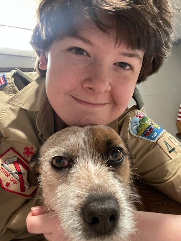 TOP PHOTO: BSA Life Scout Claire Matherly and her dog Lucky. Come out on Saturday, March 16 to the Dog Wash at Tractor Supply and support Claire and her Eagle Scout project.