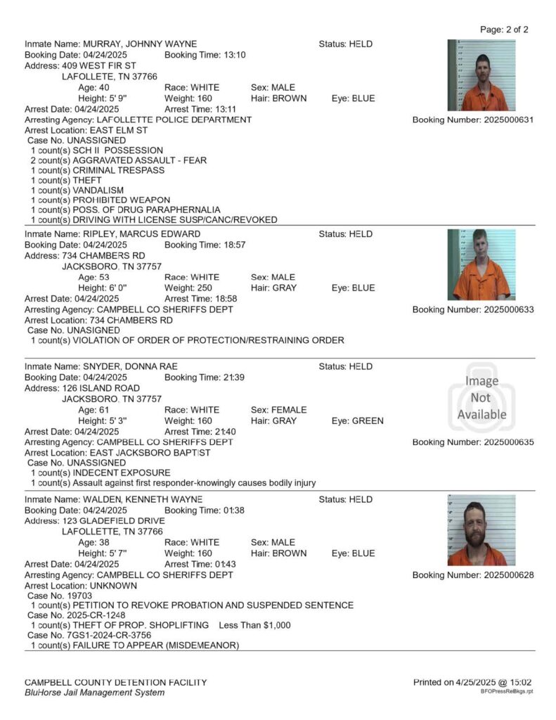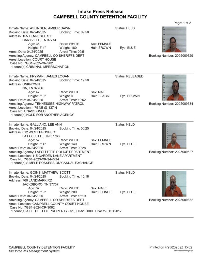 Four Names on Tue., Sept. 30, 2025, B.C. Bonding Arrest Report. B.C. Bonding 423-563-0065.