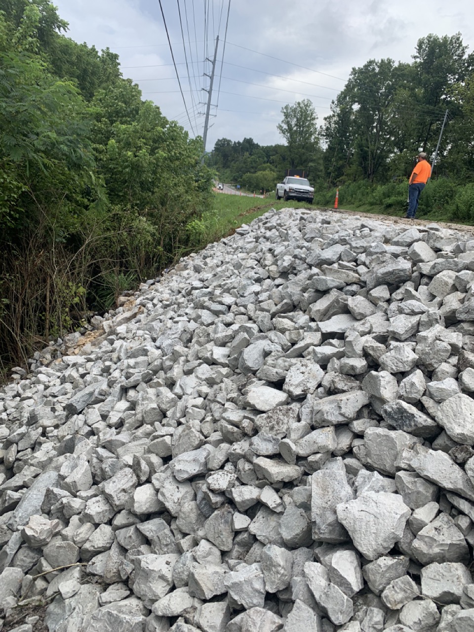 The bank, on the north side of the road, that holds the roadway has failed. The bank is sliding down. “The plan is to remove the loose dirt, lay down a barrier, then fill with rock and reroute some of the drainage. (WLAF NEWS PUBLISHED – 08/14/2023-6AM-UPDATED 08/14/2023-2PM)
