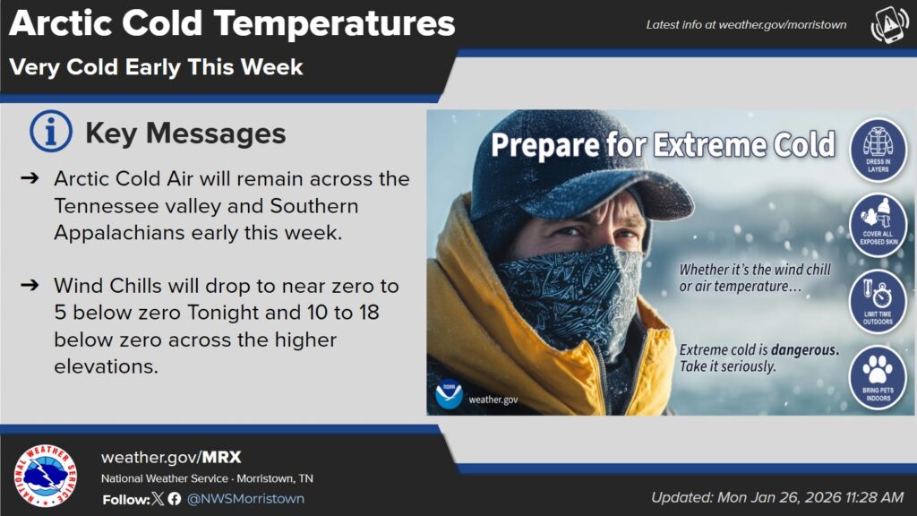 LAFOLLETTE, TN (WLAF)- Extremely cold conditions are here this morning, and it will remain cold the remainder of the week. Another surge of bitter cold is possible Friday night into the weekend.