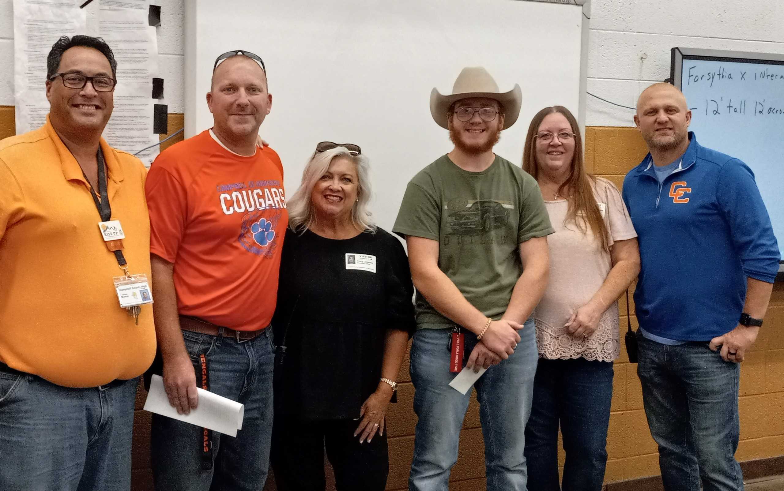 TOP PHOTO: Alco Builders & Realty made a $500 donation to the CCHS agricultural department to fund Senior R.J. Moore’s FFA project. Pictured left to right are Agriculture teacher Nathaniel Morton, CCHS Assistant principal Brad Collette, Tracy Lobertini with Alco Builders & Realty, R.J. Moore, Anita Kettlehake and CCHS Principal Ben Foust