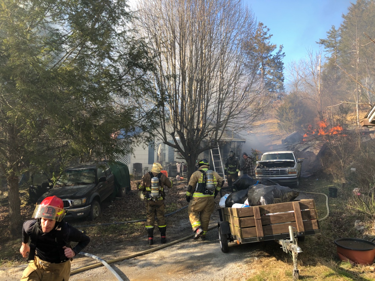 Fox Den Lane near High Knob is where a home caught fire around 2:30 pm on Wednesday.  Units from the Campbell County Rural Fire Service responded in 25-degree weather.  Firefighters from the La Follette and Caryville Fire Departments were called in to assist.TOP PHOTO:  Firefighters battled the home fire and worked to contain the smoke house fire, behind the home, from getting off the property.
